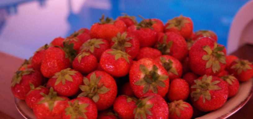 Schale mit leckeren Erd- oder Himbeeren,