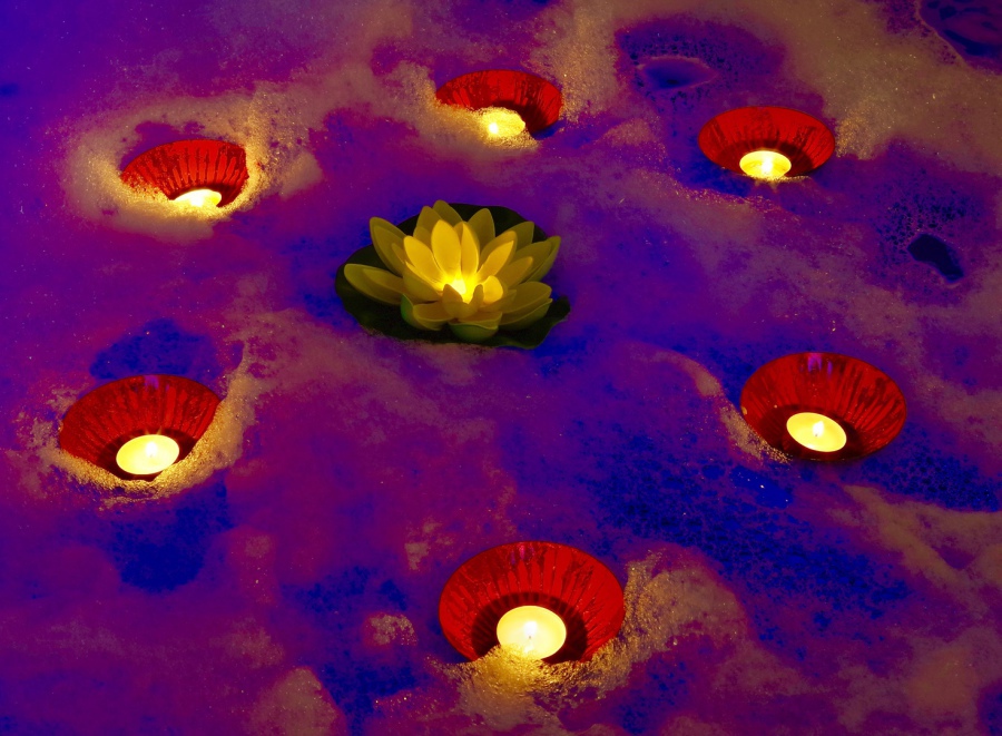 schwimmende brennende Kerzen im Whirlpool-Jacuzzi