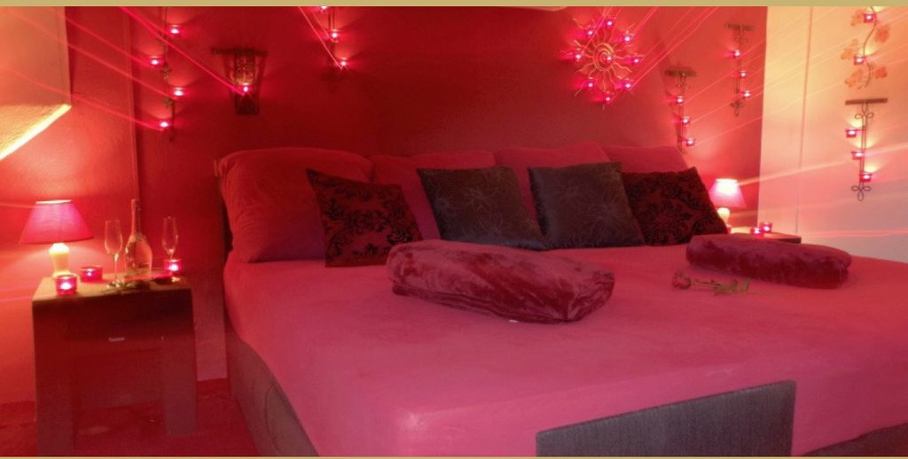 + duftende Dekoration mit roten Rosenblätter im gesamten Kuschelzimmer verteilt