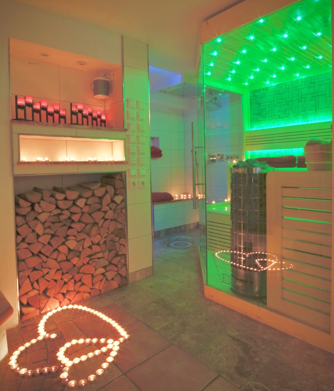 + 60 brennende Teelicher in der Kuschelsuite verteilt