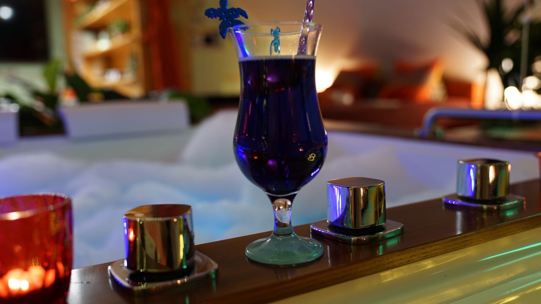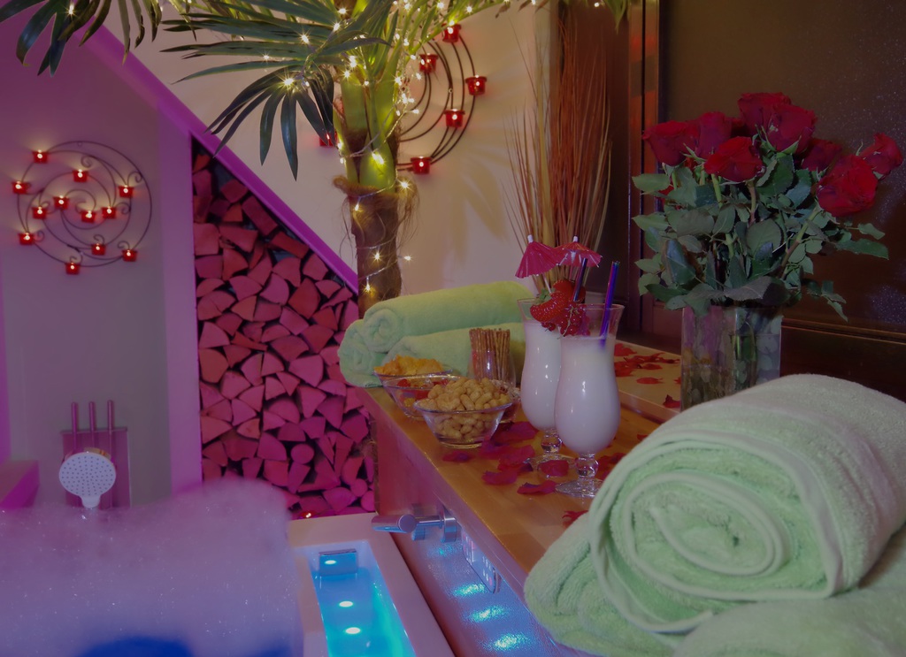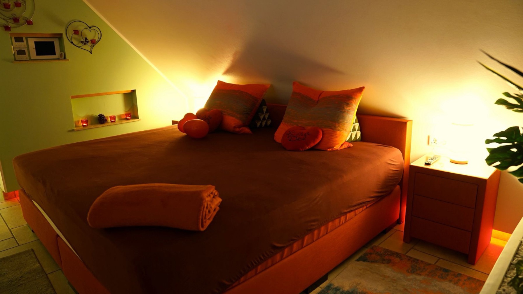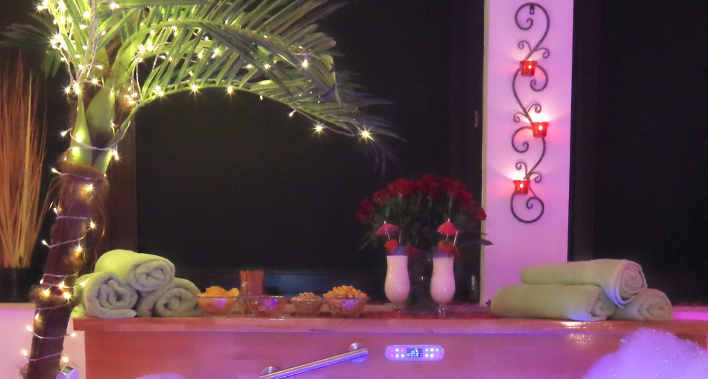 vom Whirlpool oder vom Bett aus einen romantischen Film schauen,