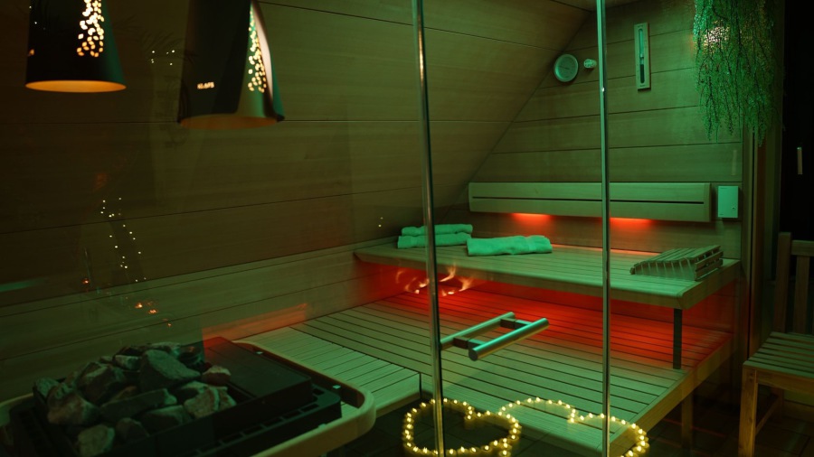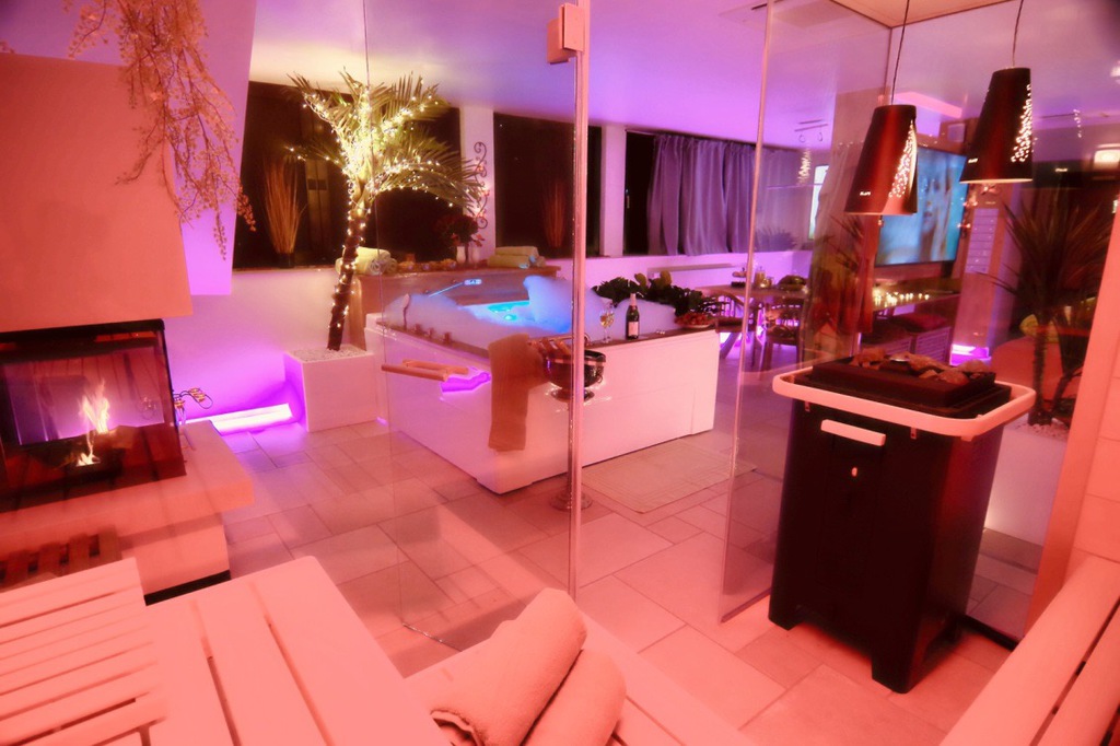 mit Whirlpool-Jacuzzi + Sauna + Kaminfeuer